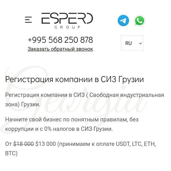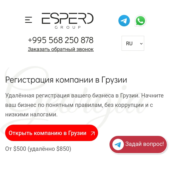 Благодаря помощи компании Эсперо я успешно зарегистрировал ШПС в Грузии. Я рекомендуем эту компанию всем, кто нуждается в профессиональной помощи в регистрации бизнеса в Грузии. Огромное спасибо за ваше качественное обслуживание и ответственный подход к работе!